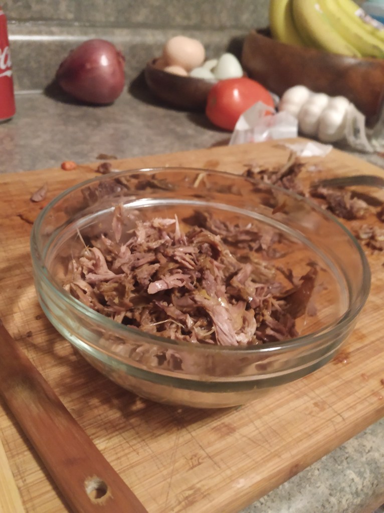 Now that its covered in stock, and well seasoned, its time to wait. Reduce the heat to low, cover with a top, and let it slow cook for a minimum of two hours. I did this squirrel for four. You’ll know when the meat is done because it will fall apart when prodded with a fork. If you’re cooking bone in, you’ll want to remove all the meat from the pot at that point. Fork the meat off the bone, and then return it to the pot. The bones can be saved and reused for stock.