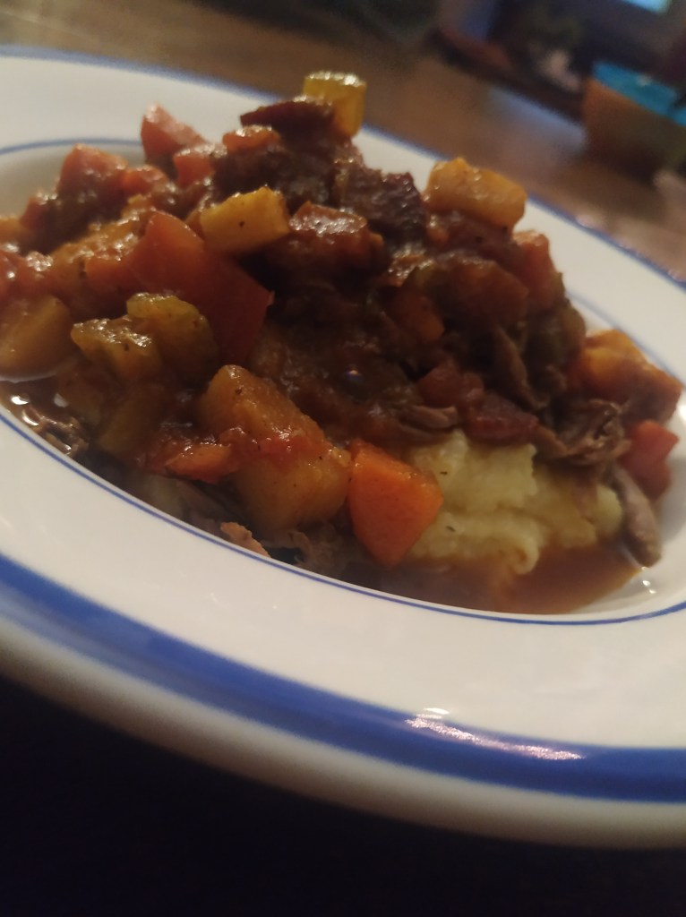 Lastly, what are you going to do with this meat? If you have just cooked meat, braised wild game is great for tacos or pulled meat sandwiches. If you’re like me, and you’re going for whole meat in one pot with a bunch of veggies, then I think the way to go is serve the meat over a polenta or rice.